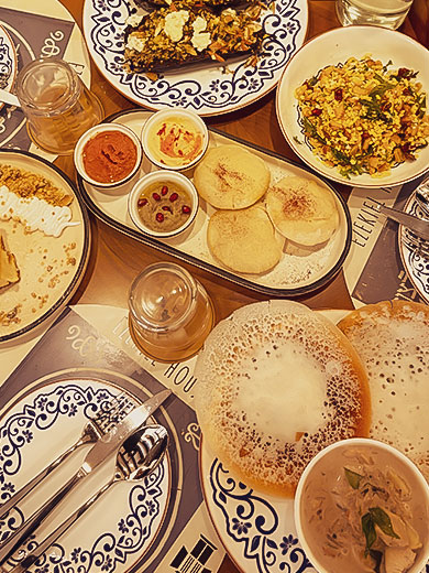 The menu draws from Jewish food traditions, interpreted with ingredients that are easily found in the local markets. Dishes move between Middle Eastern and local influences, from shakshouka and mezze-style plates to appam served with eggs and spiced stews. There’s a balance of lighter plates, breads, and more substantial dishes, along with desserts that are simple and well-made.